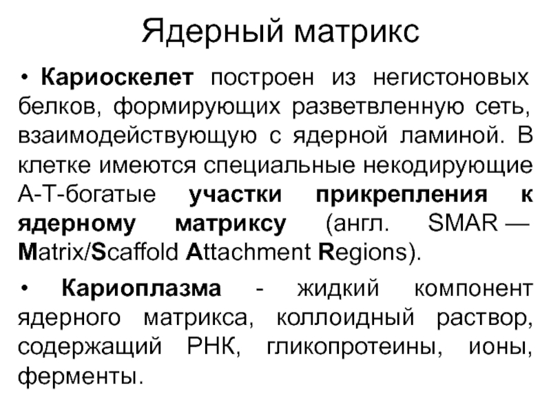 Кариоскелет построен из негистоновых белков, формирующих разветвленную сеть,