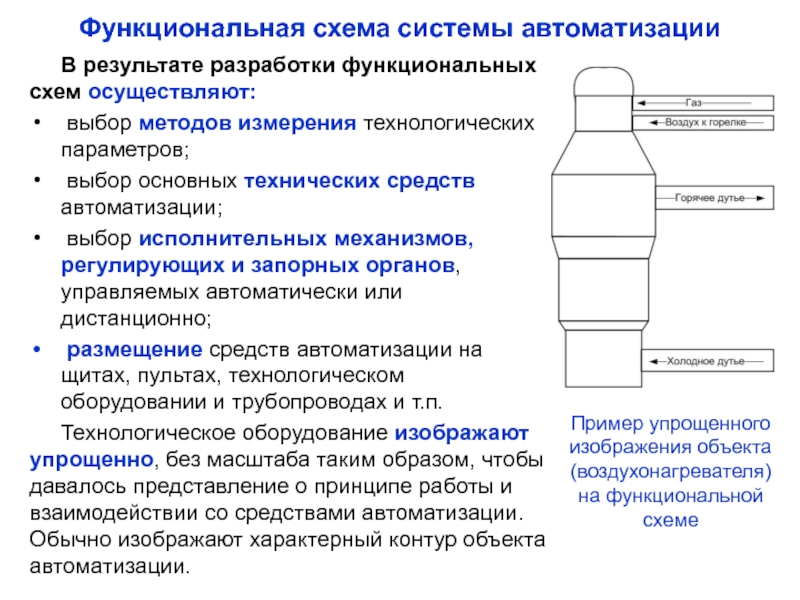 функционально-блочную структуру отдельных узлов автоматического контроля, управления и регулирования технологического