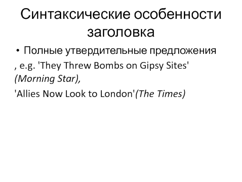 c. С пропущенным подлежащим и частью сказуемого, e.g. 'Off to the sun' (Morning Star), 'Still in danger' (The Guardian)