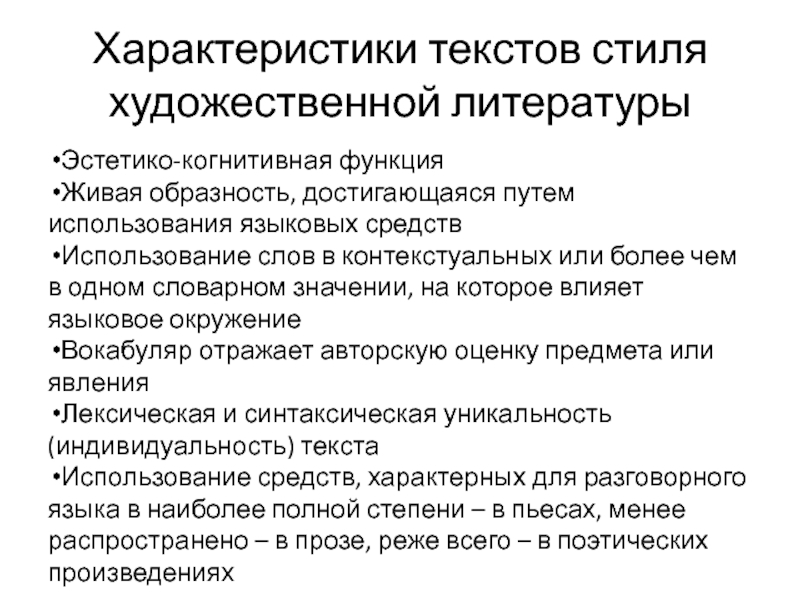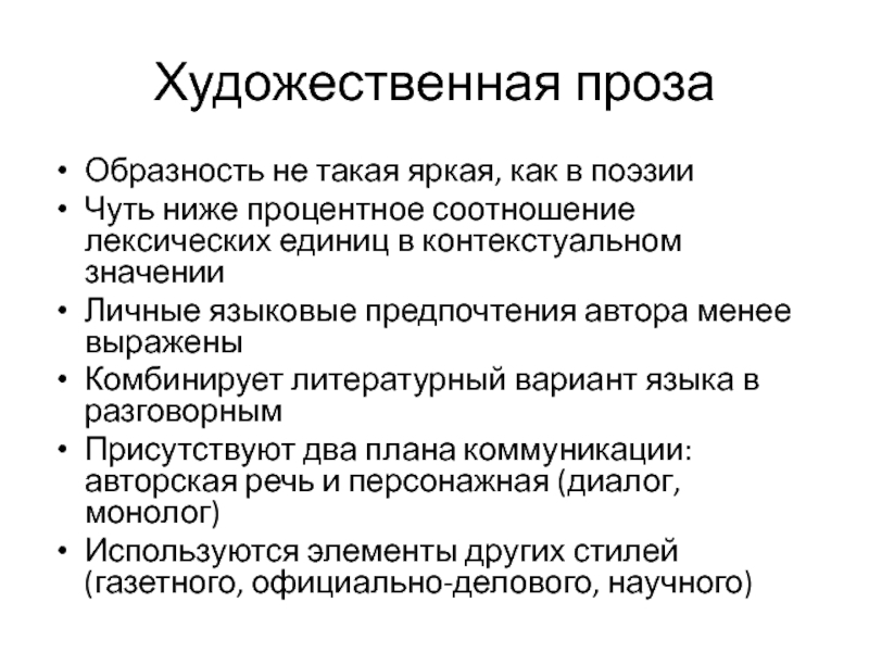 Использование средств, характерных для разговорного языка в наиболее полной степени – в пьесах, менее распространено – в прозе, реже всего – в поэтических произведениях
