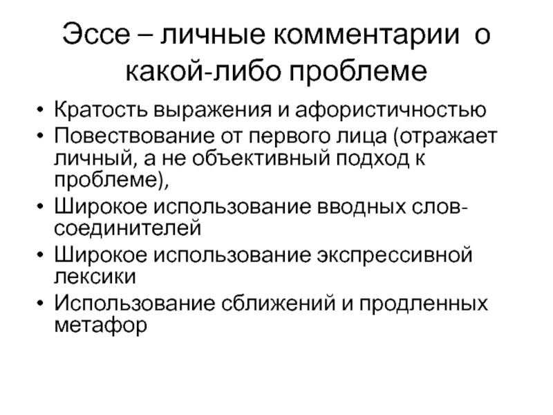 Слайд 15Эссе – личные комментарии о какой-либо проблеме