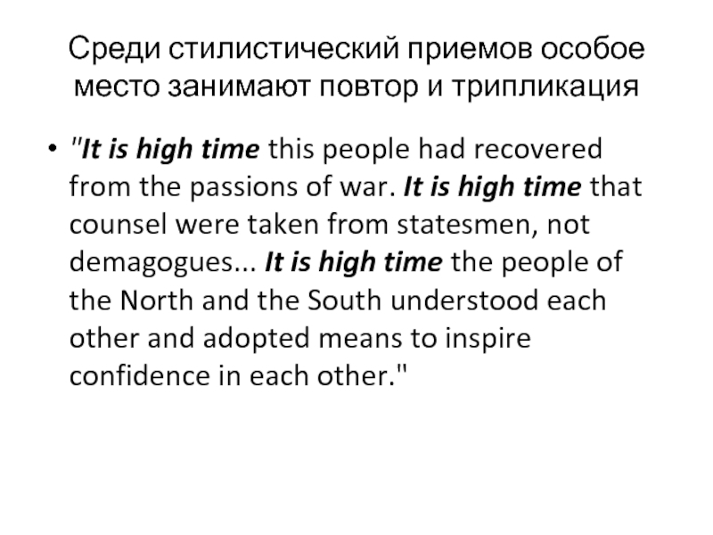 Слайд 12Среди стилистический приемов особое место занимают повтор и трипликация