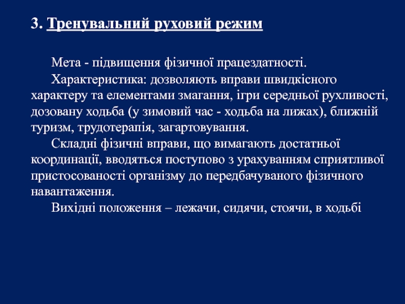 Слайд 193. Тренувальний руховий режим
