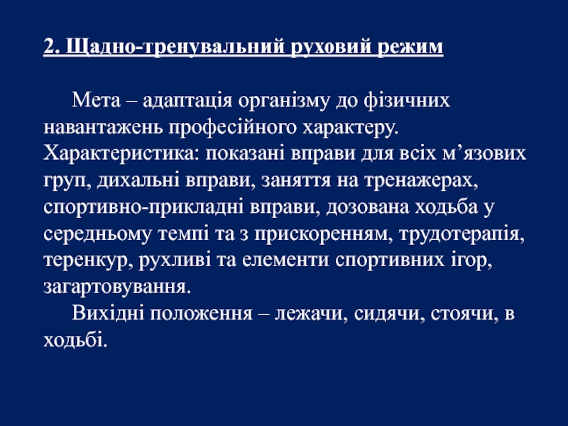 Слайд 182. Щадно-тренувальний руховий режим