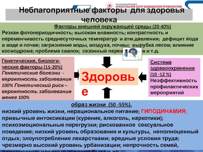 НИЗКИЙ УРОВЕНЬ ЖИЗНИ!?, нерациональное питание; гиподинамия; привычные интоксикации (курение, алкоголь, наркотики); психоэмоциональные перегрузки; рискованное сексуальное поведение; низкий уровень образования и культуры, неполноценный отдых; злоупотребление лекарствами; вредные условия труда; чрезмерно высокий уровень урбанизации; непрочность семей, одиночество; вредные условия быта и др.