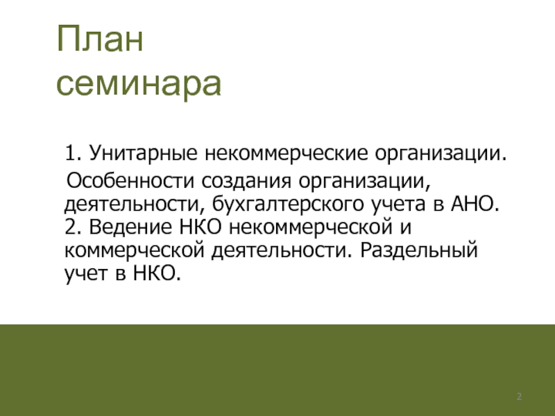 бухгалтерского учета в АНО. 2. Ведение НКО некоммерческой и коммерческой деятельности.