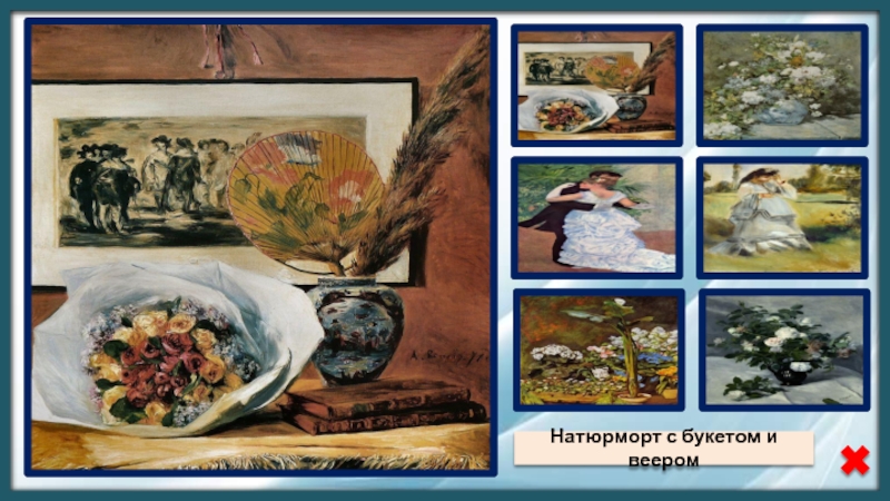 Слайд 4Натюрморт с букетом и веером