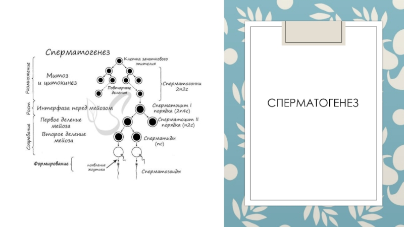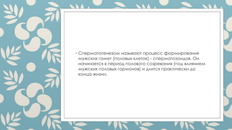 Слайд 9Сперматогенезом называют процесс формирования мужских гамет (половых клеток) - сперматозоидов.