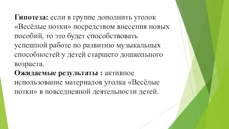 Слайд 4Гипотеза: если в группе дополнить уголок «Весёлые нотки» посредством внесения