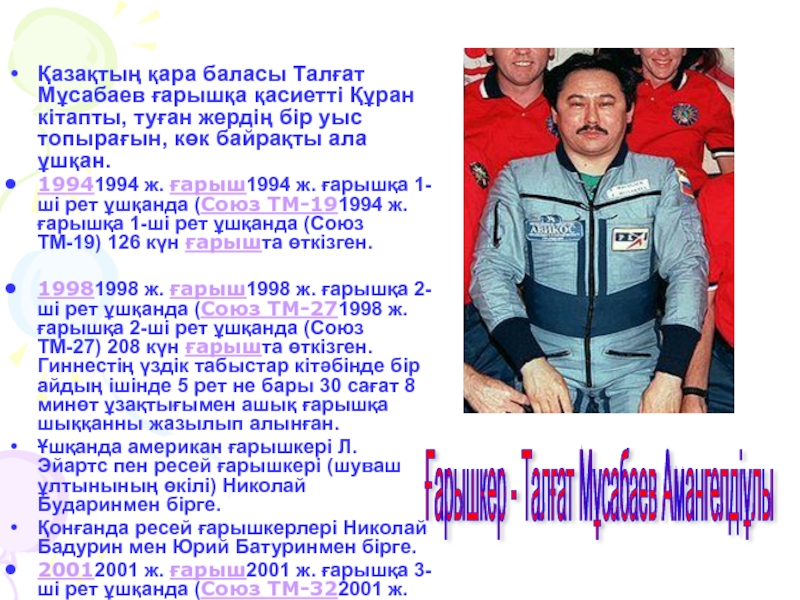 Ғарышкер - Талғат Мұсабаев Амангелдіұлы