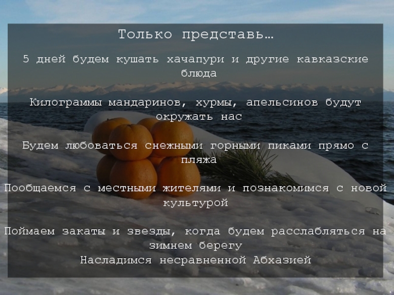 Поймаем закаты и звезды, когда будем расслабляться на зимнем берегу