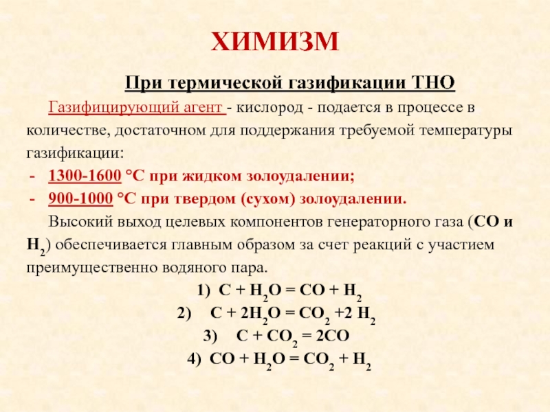Области применения продуктов газификации и конверсии