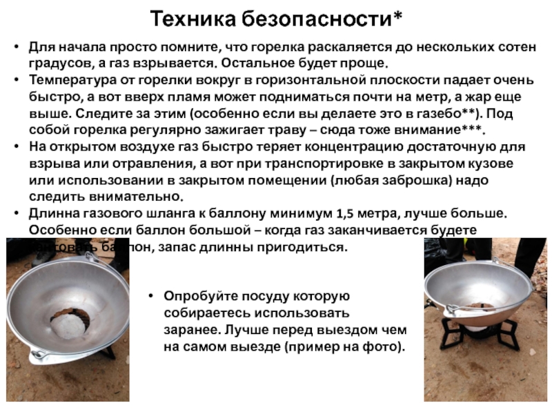 Опробуйте посуду которую собираетесь использовать заранее. Лучше перед выездом чем на самом выезде (пример на фото).