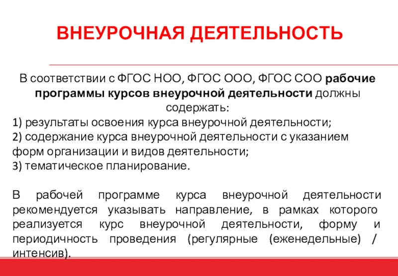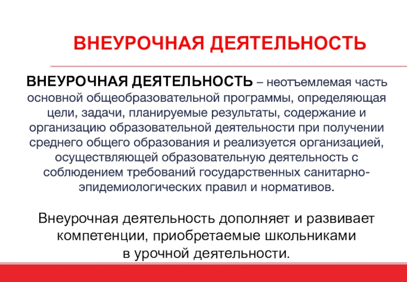 ВНЕУРОЧНАЯ ДЕЯТЕЛЬНОСТЬ – неотъемлемая часть основной общеобразовательной программы, определяющая