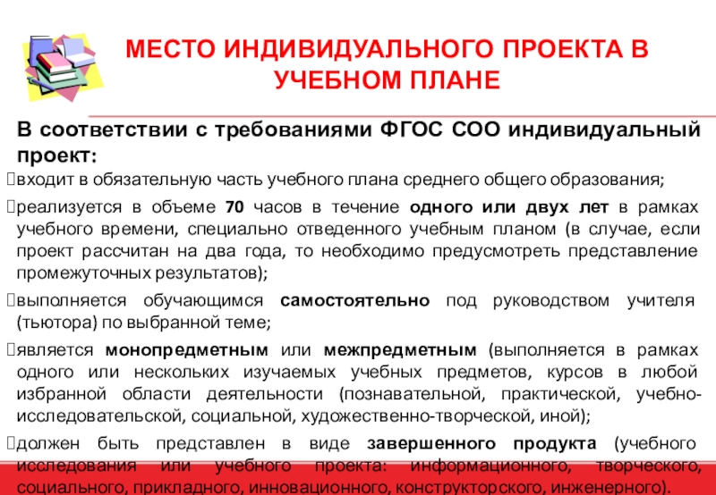 МЕСТО ИНДИВИДУАЛЬНОГО ПРОЕКТА В УЧЕБНОМ ПЛАНЕ