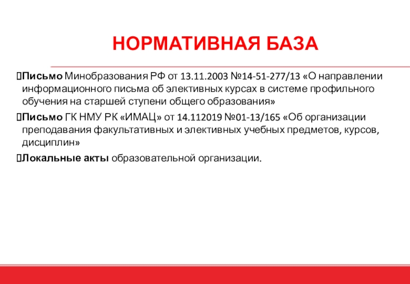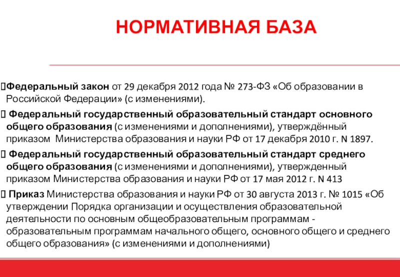 Слайд 4НОРМАТИВНАЯ БАЗА