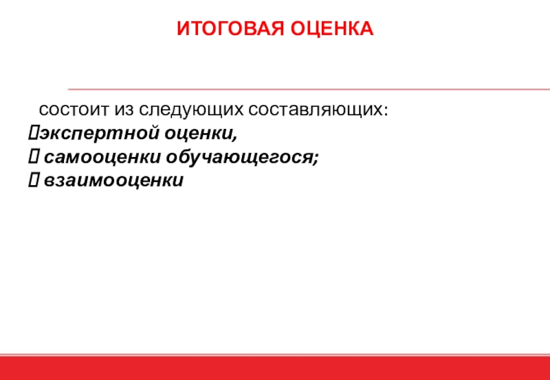 Слайд 25ИТОГОВАЯ ОЦЕНКА