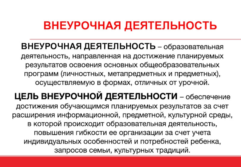 ВНЕУРОЧНАЯ ДЕЯТЕЛЬНОСТЬ – образовательная деятельность, направленная на достижение планируемых