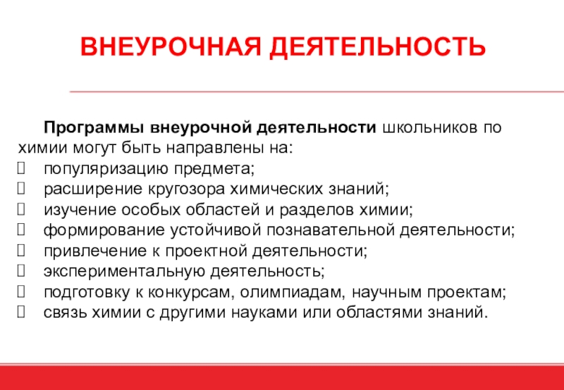 Программы внеурочной деятельности школьников по химии могут быть направлены