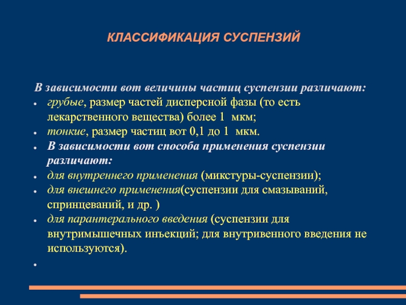 Слайд 4КЛАССИФИКАЦИЯ СУСПЕНЗИЙ