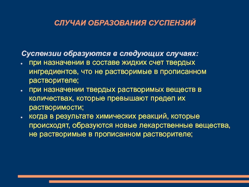 Слайд 5СЛУЧАИ ОБРАЗОВАНИЯ СУСПЕНЗИЙ