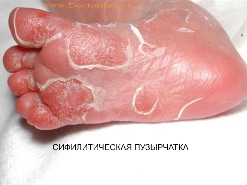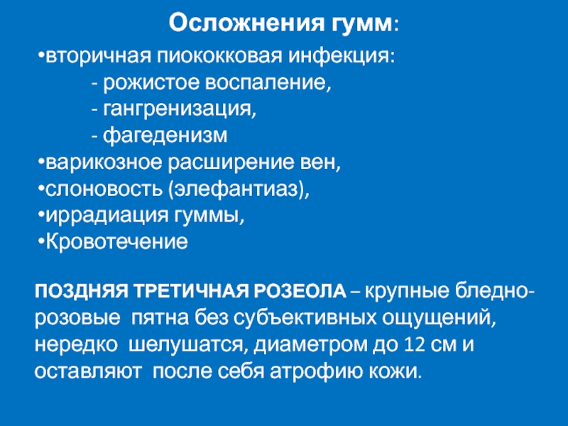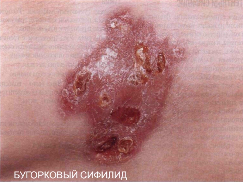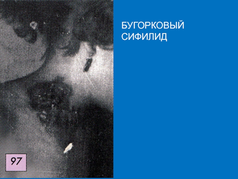 Слайд 6Поражения кожи представлены бугорковым и гуммозным сифилидами, и поздней третичной