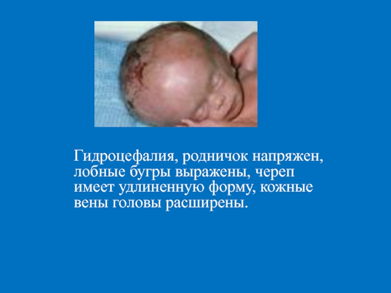 в раннем детстве специфический остеопериостит лобной и теменной костей в комбинации с гидро-цефалией.