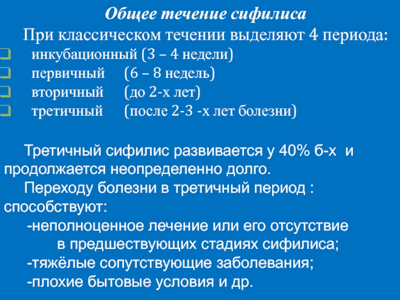 Третичный сифилис развивается у 40% б-х и продолжается неопределенно долго.