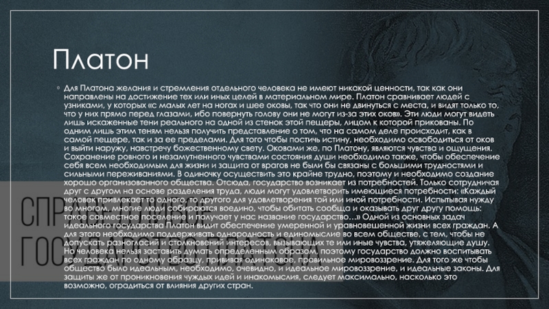 Для Платона желания и стремления отдельного человека не имеют никакой