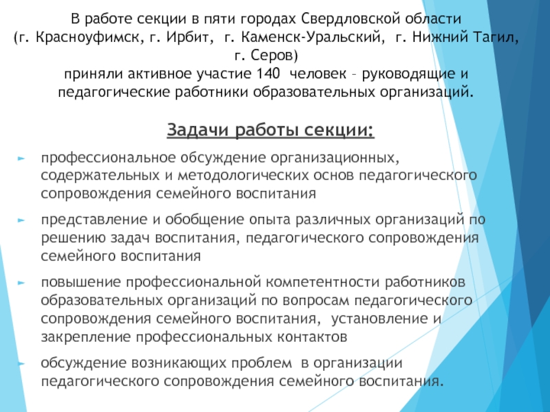 представление и обобщение опыта различных организаций по решению задач воспитания, педагогического сопровождения семейного воспитания