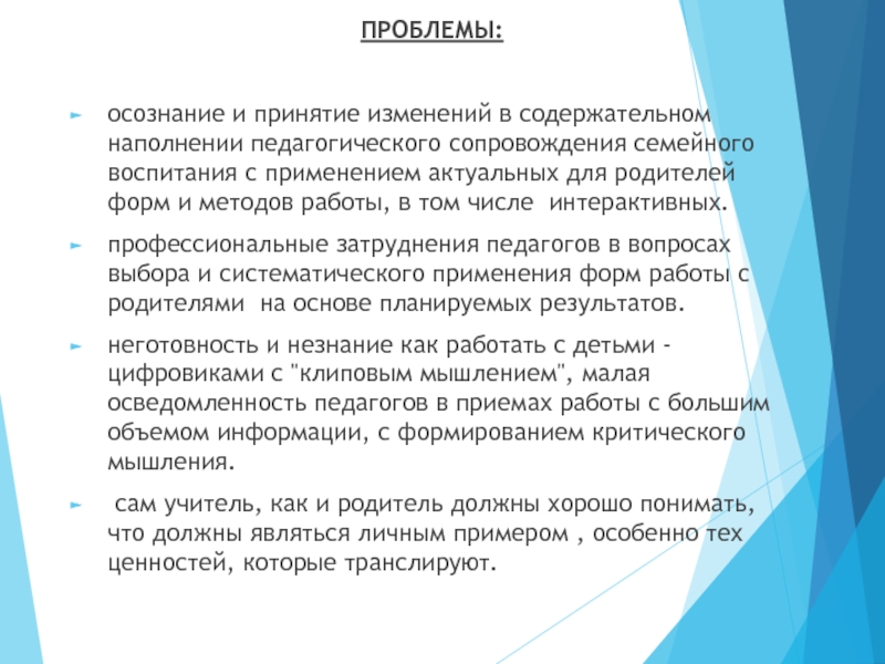 осознание и принятие изменений в содержательном наполнении педагогического сопровождения семейного