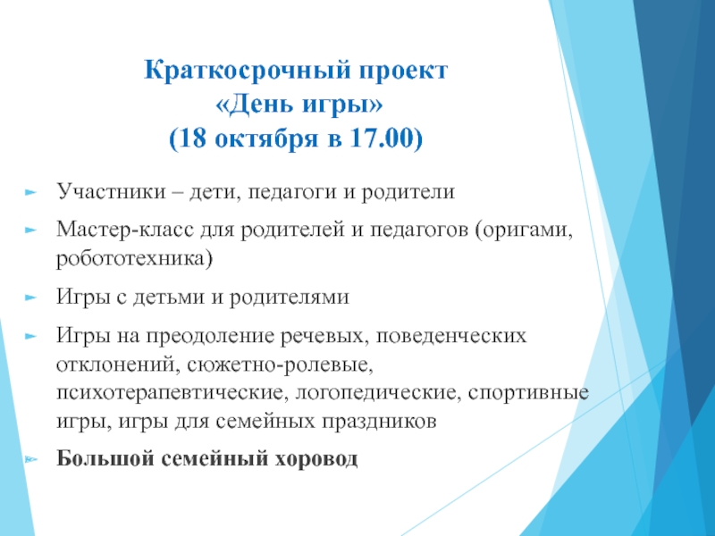Октябрь 2018 года - краткосрочный проект «День игры»