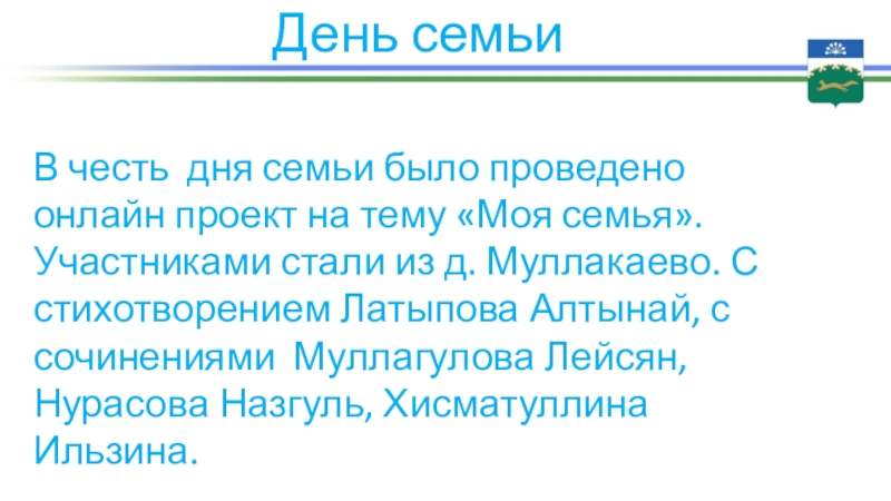 тему «Моя семья». Участниками стали из д. Муллакаево. С стихотворением