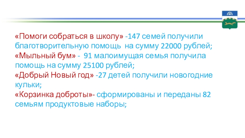 «Корзинка доброты»- сформированы и переданы 82 семьям продуктовые наборы;