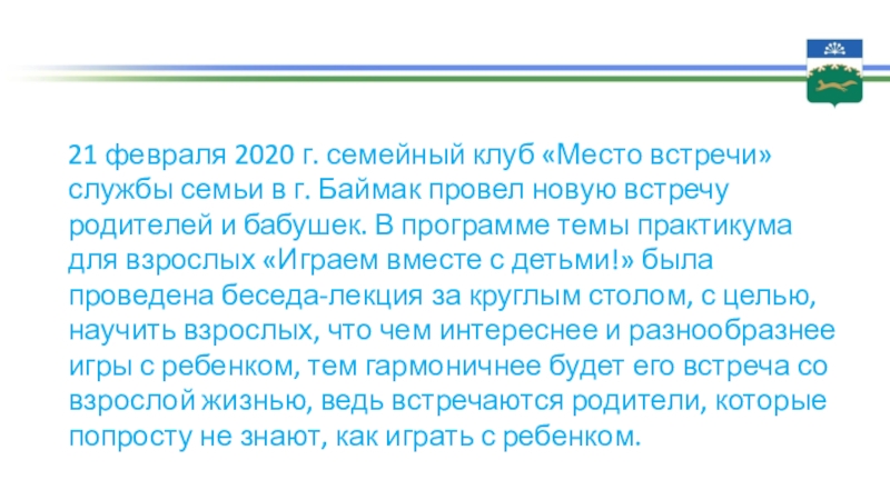 Слайд 1421 февраля 2020 г. семейный клуб «Место встречи» службы семьи