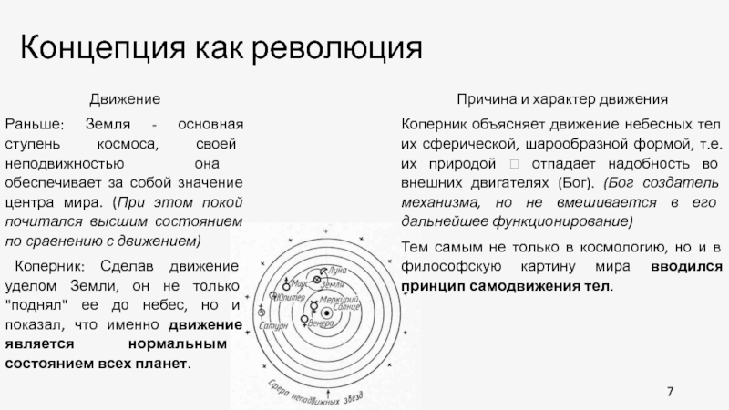 Коперник объясняет движение небесных тел их сферической, шарообразной формой, т.е. их природой отпадает надобность во внешних двигателях (Бог). (Бог создатель механизма, но не вмешивается в его дальнейшее функционирование)