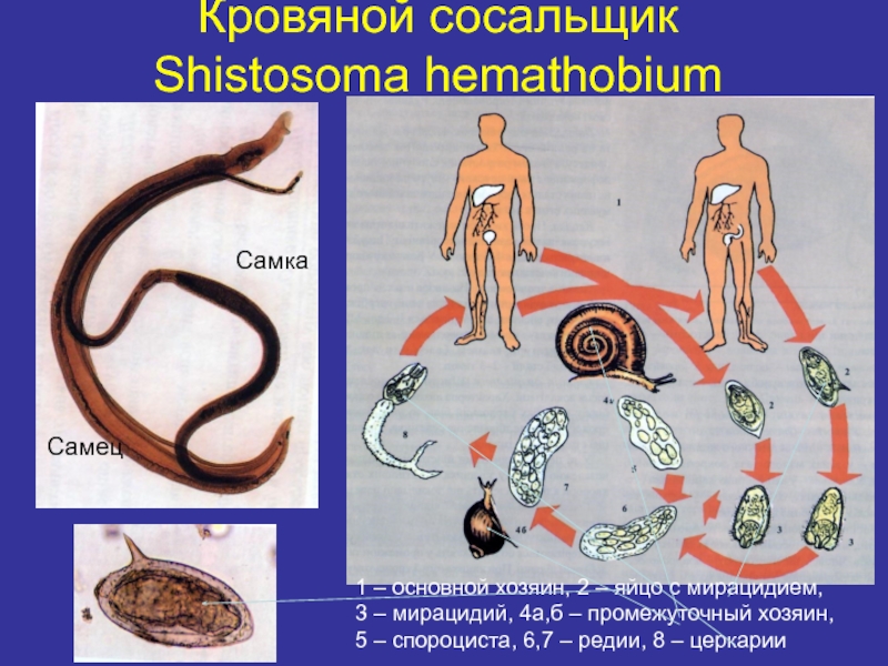 9 – второй промежуточный хозяин, 10 - метацеркаций