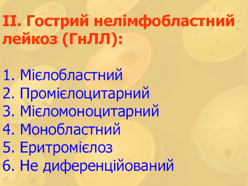 Слайд 9ІІ. Гострий нелімфобластний лейкоз (ГнЛЛ):