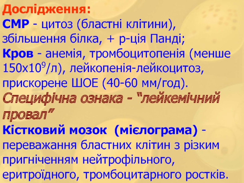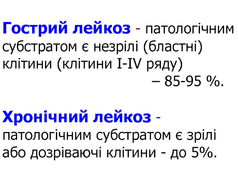 Слайд 4Гострий лейкоз - патологічним субстратом є незрілі (бластні) клітини (клітини