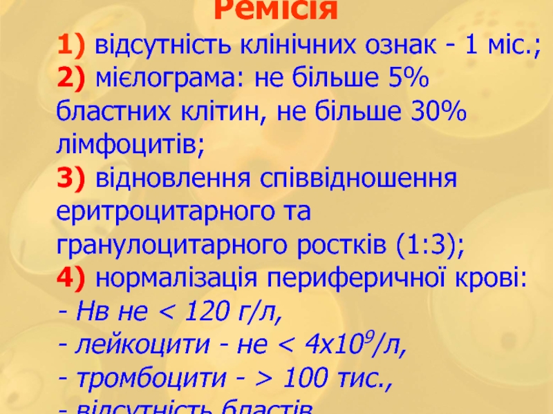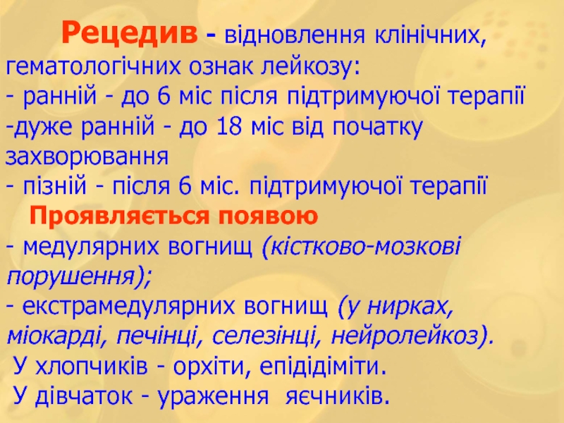 Слайд 19 Рецедив - відновлення клінічних, гематологічних ознак лейкозу: