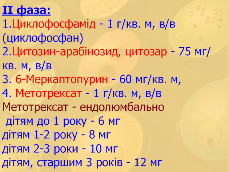 1.Циклофосфамід - 1 г/кв. м, в/в (циклофосфан)