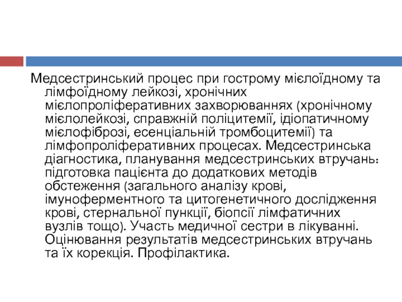 Слайд 28Медсестринський процес при гострому мієлоїдному та лімфоїдному лейкозі, хронічних мієлопроліферативних