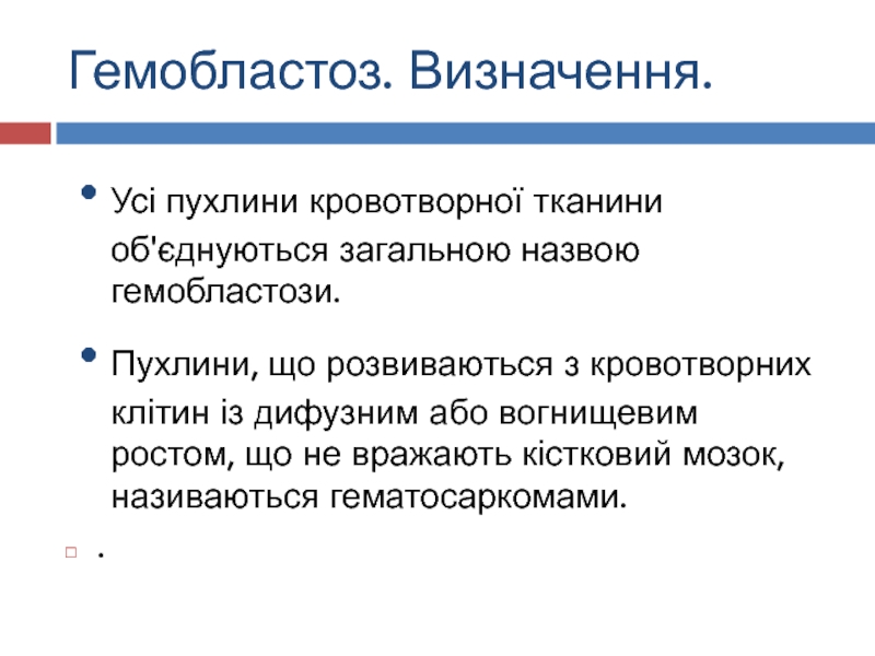 Усі пухлини кровотворної тканини об'єднуються загальною назвою гемобластози.