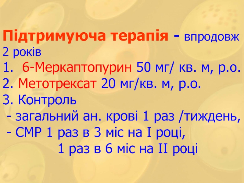 Слайд 26Підтримуюча терапія - впродовж 2 років
