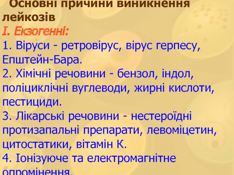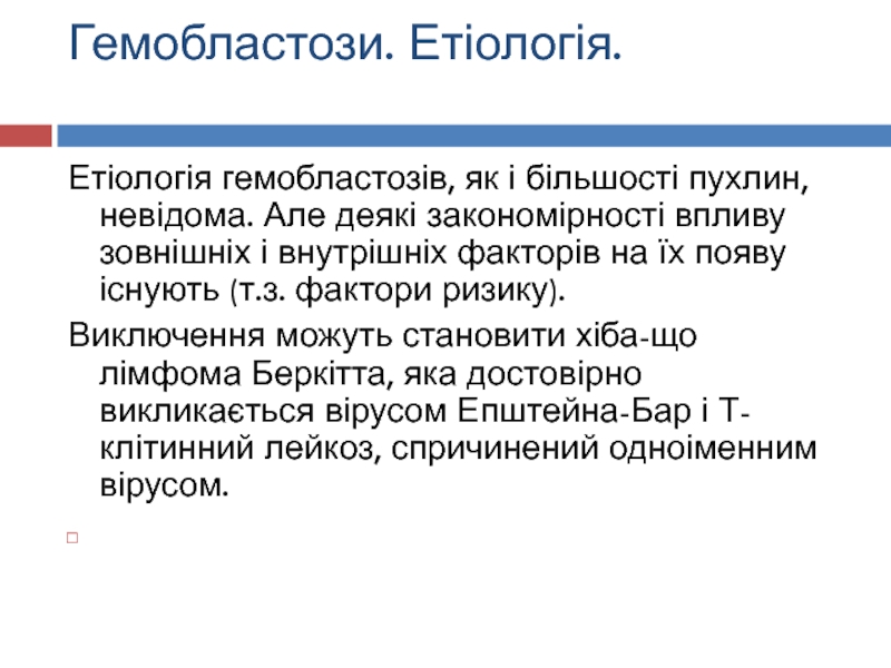 Етіологія гемобластозів, як і більшості пухлин, невідома. Але деякі