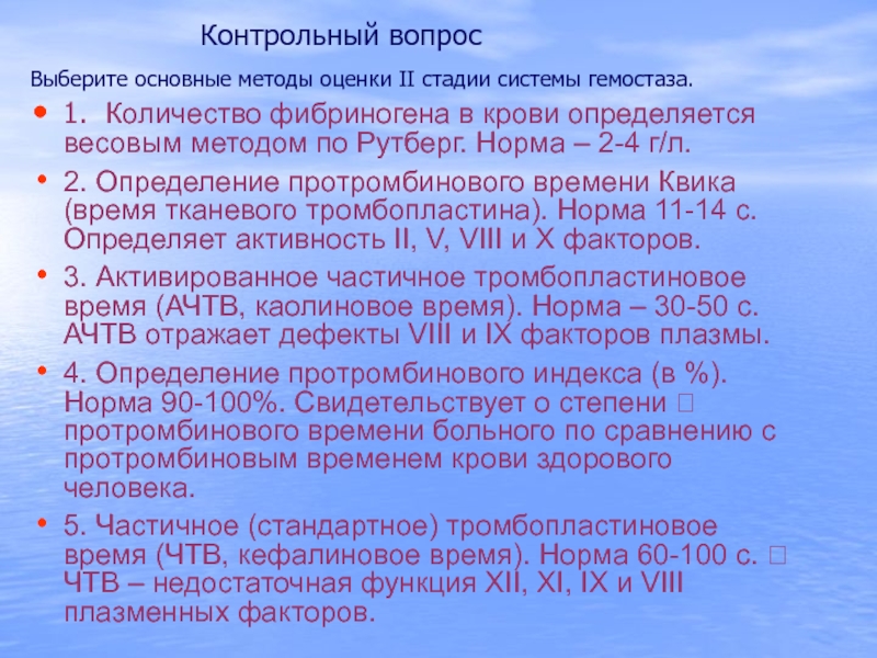 4. О состоянии внутреннего механизма коагуляционного гемостаза свидетельствует: