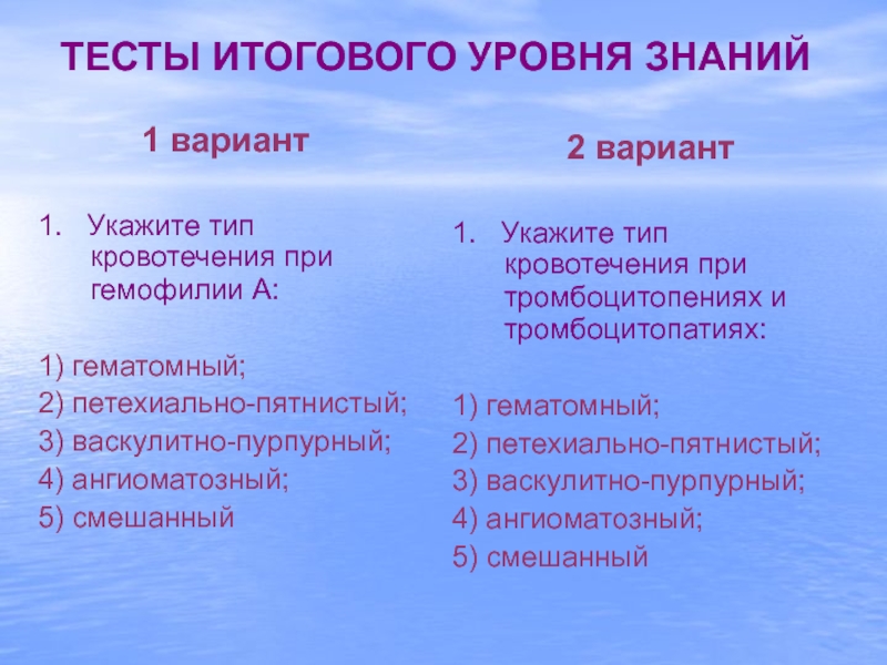 Д. Наследственные коагулопатии, виды, этиология, патогенез, лабораторная диагностика.