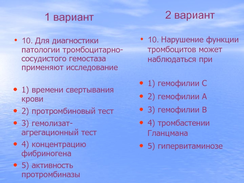 4. Сосудисто-тромбоцитарный гемостаз может быть нарушен вследствие