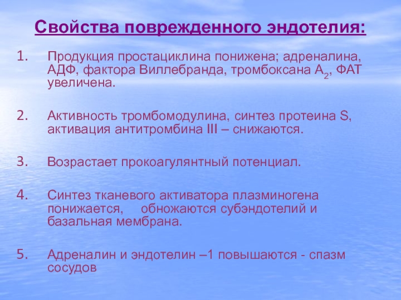 4) снижение концентрации или угнетение фибринолитических факторов;