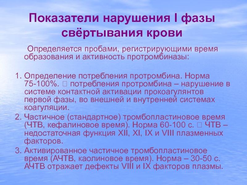 1) активированное парциальное (частичное) тромбопластиновое время;
